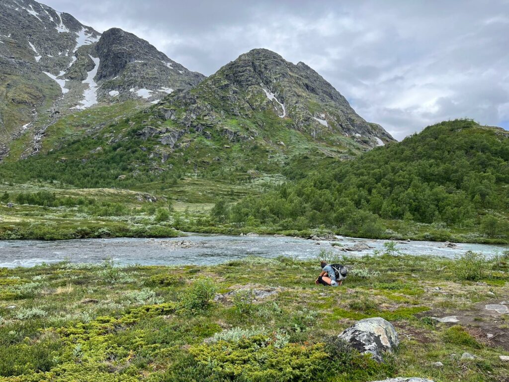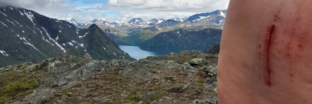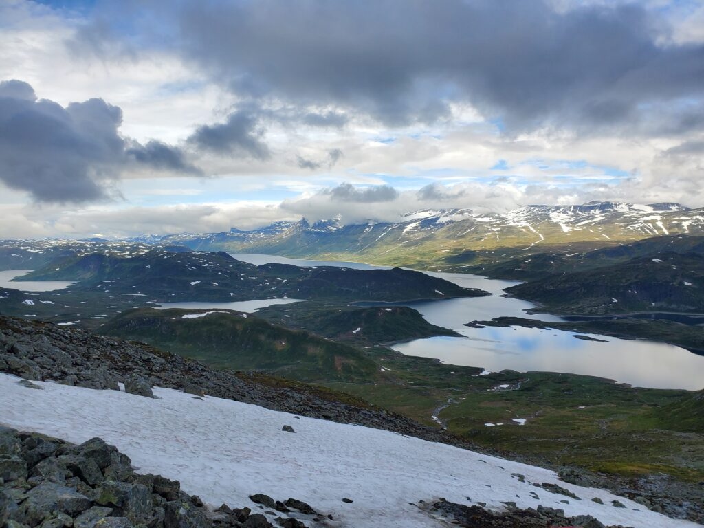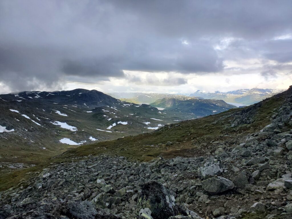 Ursprünglich hatten wir den Beseggengrat in Abhängigkeit vom Wetter geplant. Scheinbar gab es jedoch entscheidungsfreudigere Touris als uns, denn als wir uns morgens festlegen wollen ist das für die Anreise erforderliche Boot bereits ausgebucht. Doch wir sind jung und unglaublich flexibel und entscheiden uns prompt für Plan B, den Knutshøe der uns bereits von unserem Stellplatz aus angelacht hat.