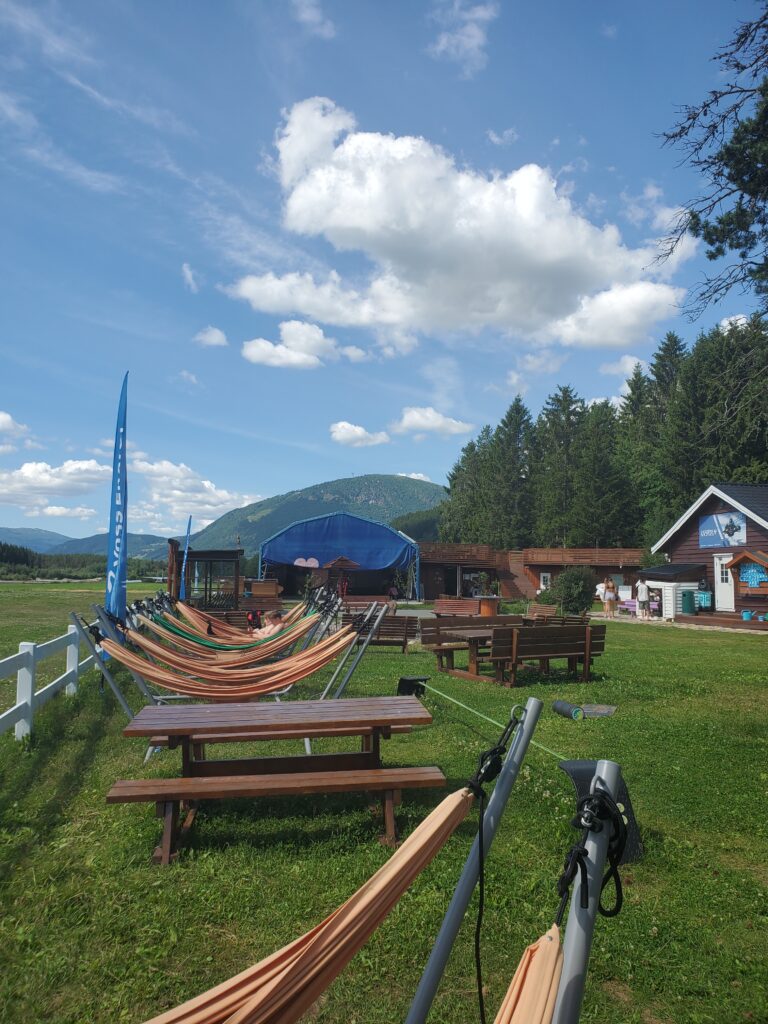 Ein See ohne Eintrittpreis aber ebenfalls mit Sprungbrett war auch noch vorhanden, ein Traum für den naturverbundenen Jogger also. Da ich mich an keinen Trick mehr rangetraut habe wärmt mich jetzt statt meinem Rücken mein Daunenschlafsack. Wider unserer Erwartungen ist es gar nicht soooo sommerlich. Mal schauen wann wir die erste Schneeballschlacht starten. Denn es geht es weiter Richtung Norden. Es wird noch heller aber kälter. Regnen solls auch. Nachdem wir aber bislang weder gespielt noch gebastelt haben werden wir auch das gut überbrücken.