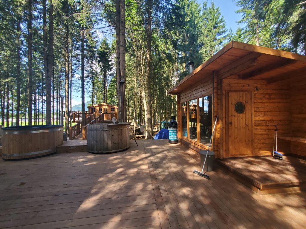 Die Fahrt geht dann weiter noch ein kleines Stück Richtung Norden und wir buchen zur Belohnung für unsere Tour eine schwimmende Sauna für den Abend. Davor laufe ich noch ein paar Kilometer durch die Gegend und anschließend gibt es ein erfrischendes Bad im See. Danach darf auch ich wieder in den Camper. Und weil wir so fleißig an Unterkünften und Booten sparen ist auch noch essen gehn drin. Nachdem die Kathrin an ihrem Stuhl festgeklebt ist gibt es jetzt ein neues Möbelstück im Camper. Was für ein Tag!!!