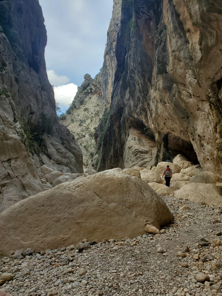 Der Verkehr hält sich zum Glück auch bei Tageslicht in Grenzen. Am höchsten Punkt brachen wir auf zu unserer Wanderung in die Golla di Gorropu und was soll ich sagen, anschließend stelle ich meine gesamte alpine Karriere in Frage, denn Schluchten sind ein echter Gamechanger. Davon können sie gern mehr bauen. Den ätzenden Abstieg hat man als erstes geschafft und danach kommt nur noch Gutes. Nach langer Vorbereitung und Diskussion ob die kostenpflichtige Schlucht um diese Jahreszeit überhaupt offen sei trafen wir nach dem 1.5 stündigen Zustieg auf das Kassenhäuschen. Wir waren fassungslos. Zugegebenermaßen war es ein Kassenzelt aber die Fassungslosigkeit war real, dass dort allen ernstes jemand saß. Wir machten ihn freundlich darauf aufmerksam, dass off-season ist doch vor uns seien heute angeblich bereits 9 Leute in der Schlucht gewesen.