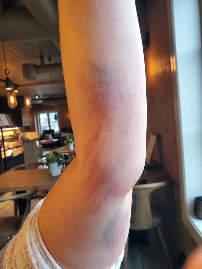 Als die Kathrin bei dieser waghalsigen Tour von der Wand abrutscht und sich in meinen Armen (und denen eines Miesbachers der ebenfalls zufällig unter ihr stand) wiederfindet fällt es mir wie Schuppen von dem Augen und ich weiss jetzt was ich beim Packen vergessen habe: die Blubberfolie in die man die Kathrin vor Outdooraktivitäten einpacken muss… jetzt hat sie mal wieder überall Kratzer und Schrammen und klebt ständig an etwas fest. Heldenhaft tapfer sagt sie es habe kaum wehgetan und wir ziehen weiter.