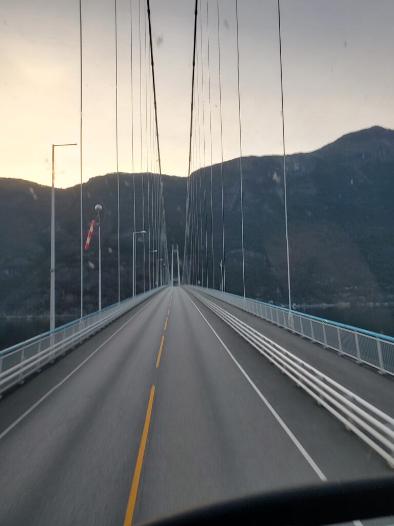 Anschließend fahren wir dann wie geheißen zum nächsten Fjord und diesen entlang. Durch 5 verschiedene Wetter auf 3,2 km. Im Fahren bewundern wir die Natur und wissen nun, warum es der Fjord-Tag in die Reiseplanung geschafft hat.