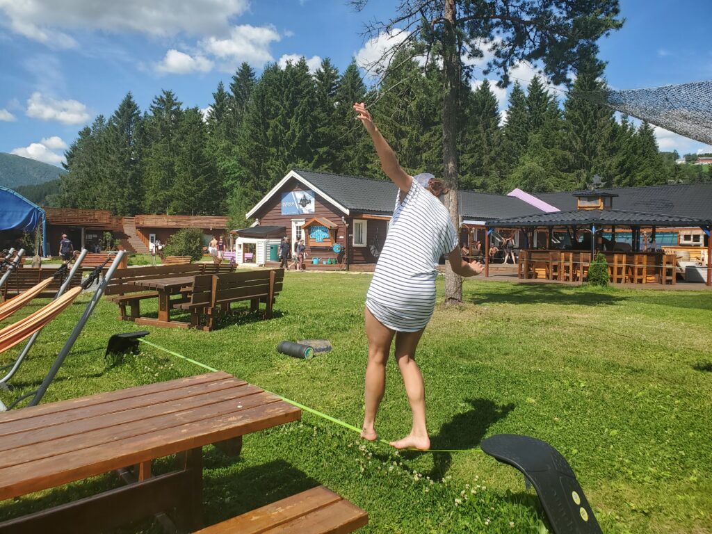 Nachdem ich 6 Schritte am Stück auf der Slackline gemacht habe höre ich auf denn ich spüre mehr und mehr neidische Blicke und will nicht provozieren.