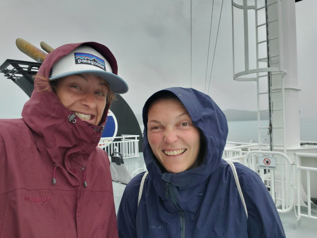 Der nächste Tag beginnt wie versprochen mit strömenden Regen. Wir hüpfen noch kurz ins Meer weil wir eh nass sind und dann geht es weiter Richtung Stavanger. Mittags ist es eh schon denn geschlafen haben wir wie Steine. Die erste Fährfahrt kommt schnell. Die Abwicklung läuft runder und schneller als eine U-Bahn Fahrt zur Münchner Freiheit. Wir könmen uns gar nicht mental vorbereiten so schnell sind wir auf der Fähre. Enttäuscht müssen wir als alte Bootsfans feststellen, dass es an Deck doch zügig ungemütlich wird.
