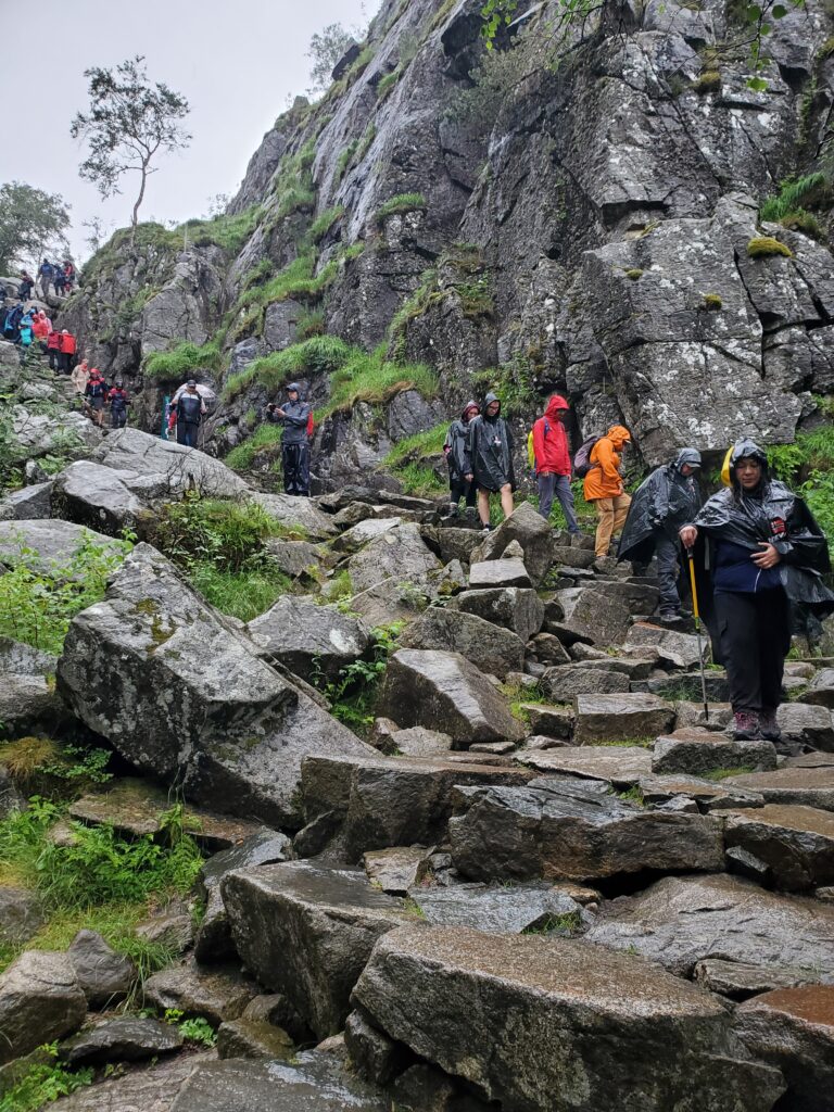 In einer vermeintlichen Regenpause reihen wir uns dann in die Schlange auf den Berg hoch ein.